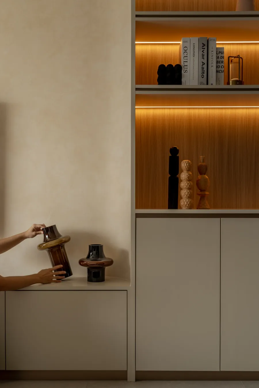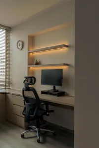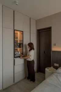 The common area is where you want to unwind and escape into moments of serenity. It has an airy and breezy feel with a clean, minimalist look that comes with a built-in custom TV console and a nifty backlift shelf. Display your personal belongings in a showroom style? That’s exactly it. The built-in carpentry is a classic Singaporean move, making every inch count and keeping visual clutter to its minimum.